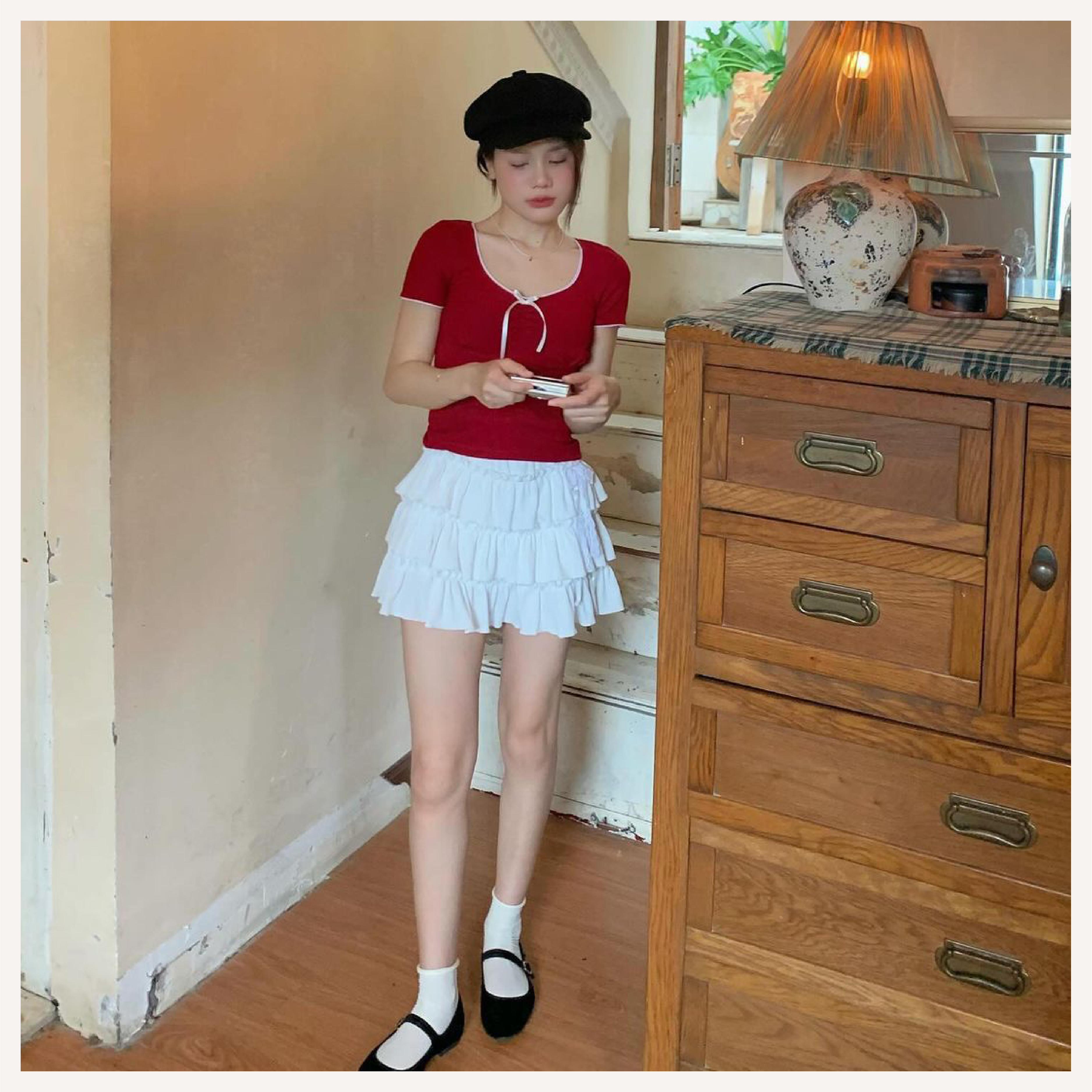 Jelly Top | cherry Jelly Top Giá : 18O.OOO Tình trạng : còn hàng Màu : cherry red (đỏ đô) Chất liệu : thun cotton gân tăm lạnh Chi tiết : thoáng mát, mềm mịn đanh, co giãn tốt, ít nhăn form ôm vừa màu sáng, tôn da Số đo : ngang ngực 7O-95 dài áo 5O bắp tay tối đa 34 Related Comments are closed.