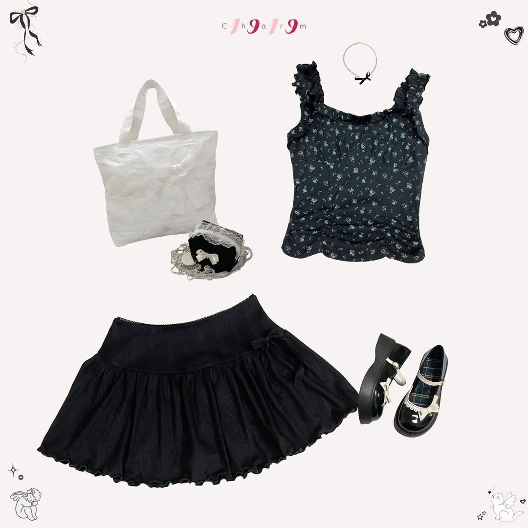 - blackblossom (xám đen họa tiết hoa nhí xanh)